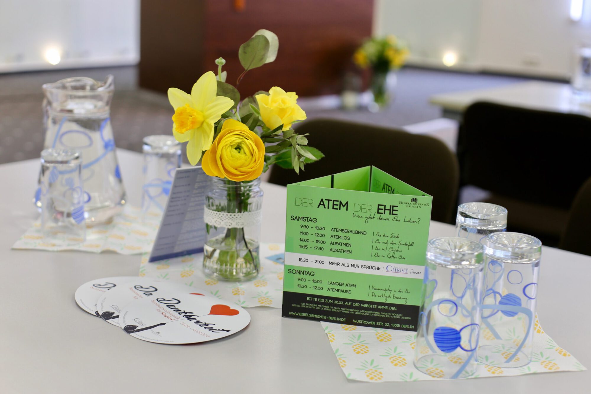 Mit dem Bund fürs Leben beschäftigten sich am Wochenende des 14. und 15. Aprils die Mitglieder und Redner unserer Gemeinde sowie einige Gäste, die wir begrüßen durften. Manchmal musste vielleicht kurz Luft geholt werden, andere hielten vielleicht zwischendurch kurz den Atem an, aber einen Atemstillstand schien niemand der Zuhörer erlitten zu haben – drehte sich doch alles um den lebensspendenden Atem der Ehe.